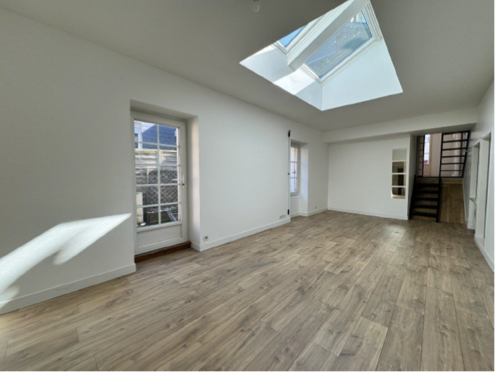 Appartement en centre-ville comprenant une cour privée avec cellier, une entrée donnant sur une cuisine aménagée et équipée (plaque et hotte), un séjour. Au demi-niveau, 1 chambre avec placard et une salle d'eau avec WC. A l'étage, 1 chambre avec baignoire. CHARGES = TOM + EAU « Les informations sur les risques auxquels ce bien est exposé sont disponibles sur le site Géorisques : www.georisques.gouv.fr ».