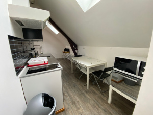 Appartement au 4ème étage d'une résidence avec ascenseur comprenant: une entrée, un wc, une pièce de vie avec coin cuisine aménagé et équipé (frigo top, plaque et hotte), une terrasse de 6 m², une...